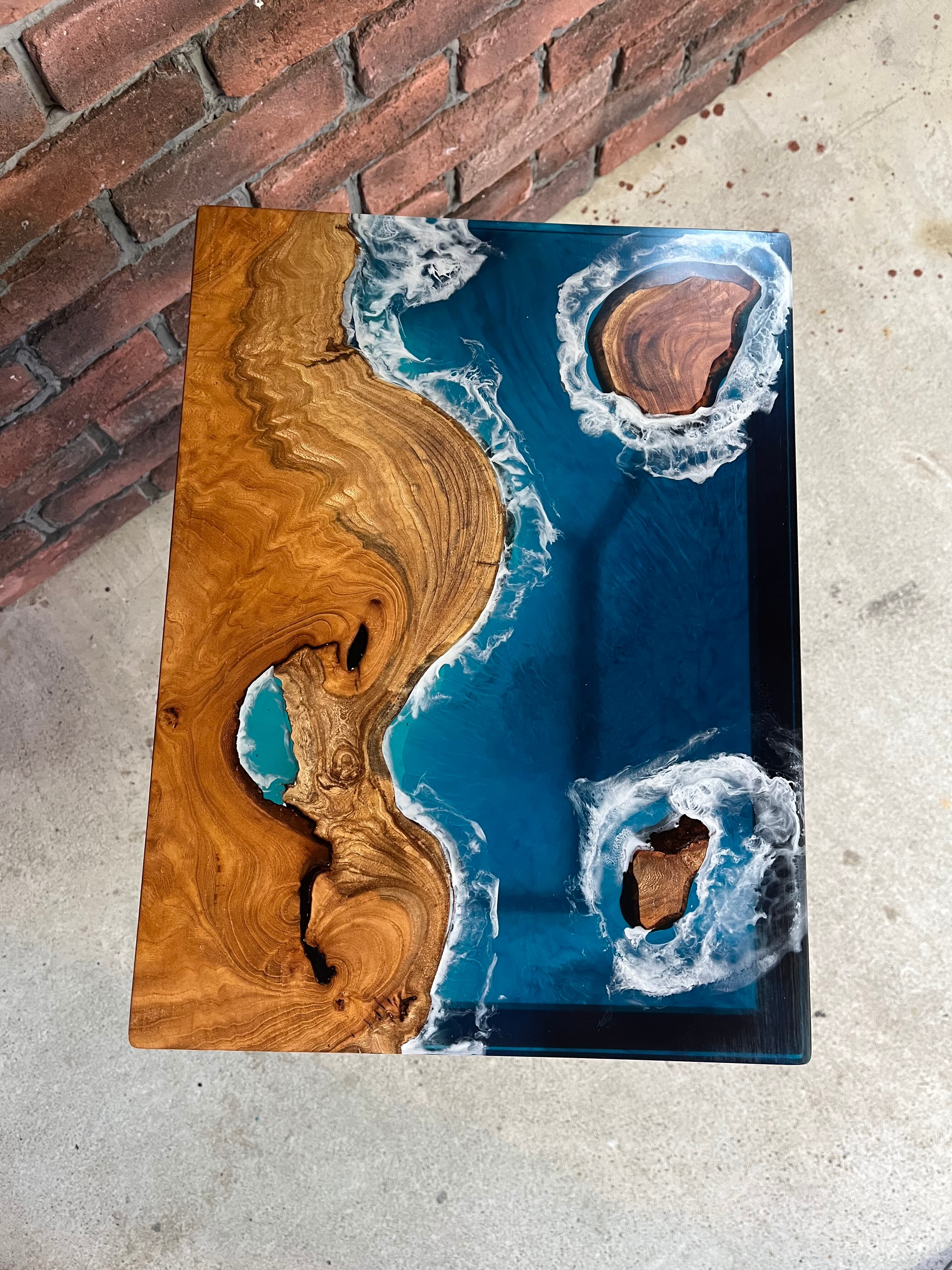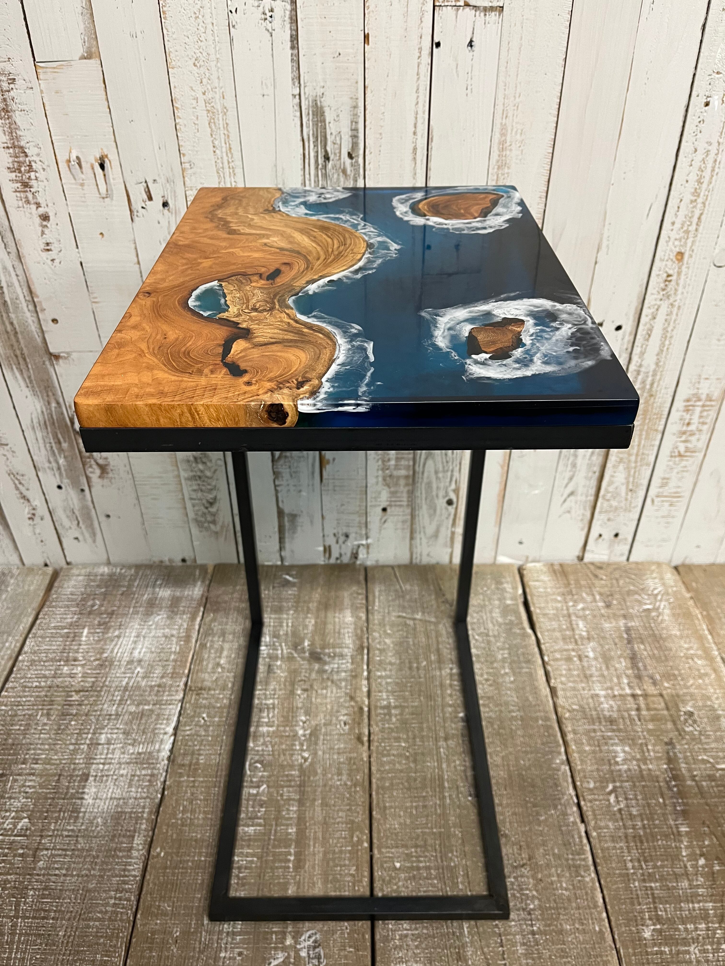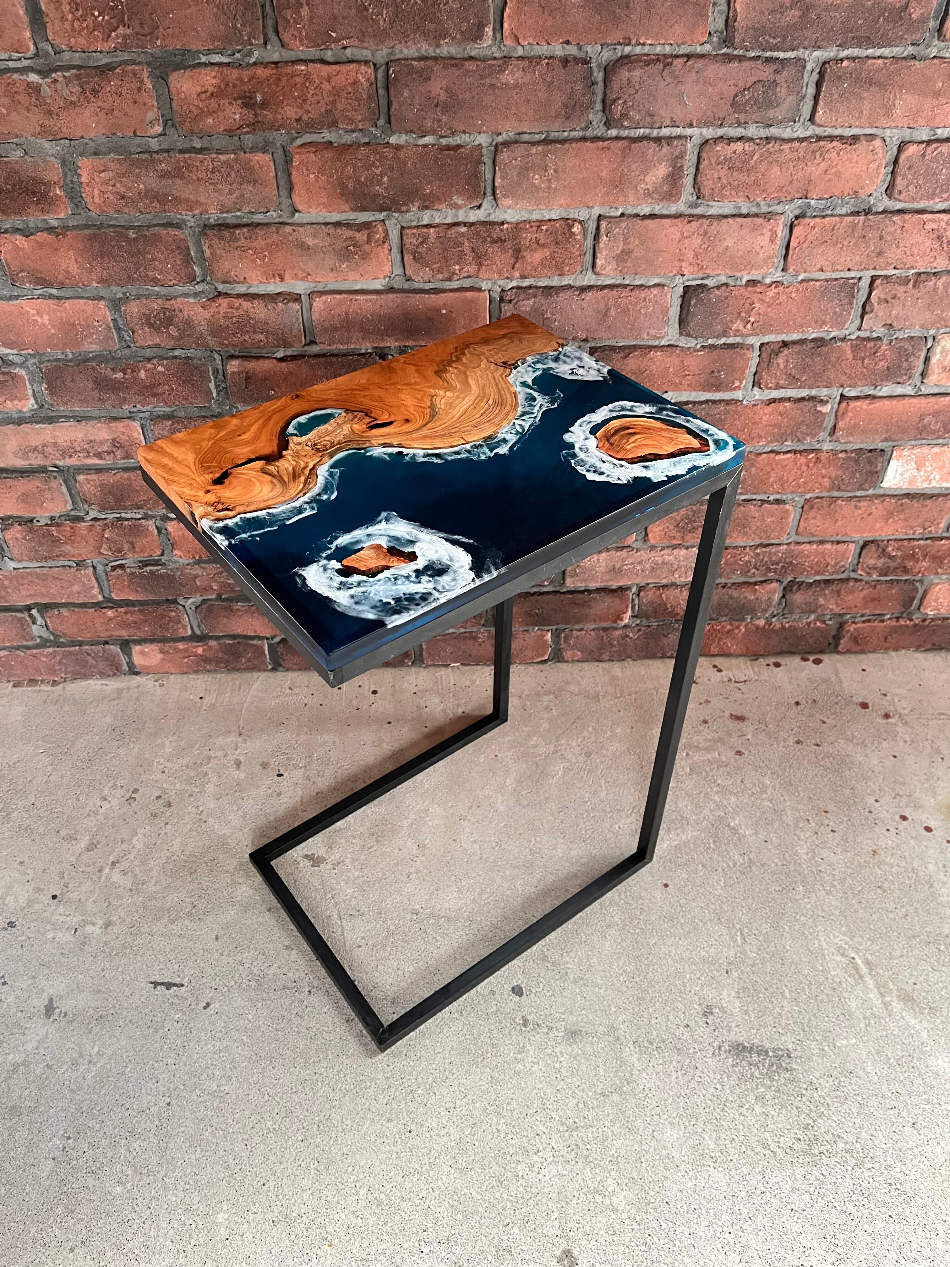 レジンを濃いブルーと淡いブルーのグラデーションで仕上げたサイドテーブルです。